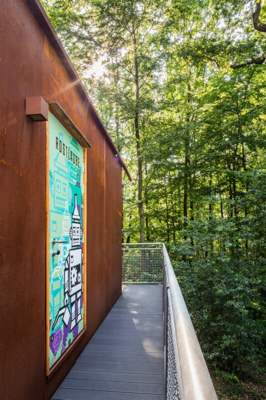 Hinter dem Konzept von FORMTYP steht Gregor Flother aus Köln. Gregor hat sich als Grafik-Designer sowohl bei der Entwicklung von Corporate Identity Projekten für Street Culture Companies (Eastpak, Vans, Titus) als auch als Illustrator einen Namen gemacht. Und das authentisch, denn als Skateboarder und Graffitikünstler ist er sich schon seit Mitte der 90er kreativ. Heute ist er auch für die künstlerische Ausgestaltung unserer drei Zirbenholz-Baumhäuser zuständig. Hier hat er sein künstlerisches Credo „Speak in extremes – it will save you time“ (David Bowie) eindrucksvoll umgesetzt. Erleben Sie Formtyps Kunst an den Türen unserer Baumhäuser „Rotkäppchen“, „Waldgeist“, und „Rostlaube“. Dafür sollten Sie sich einfach Zeit nehmen!
